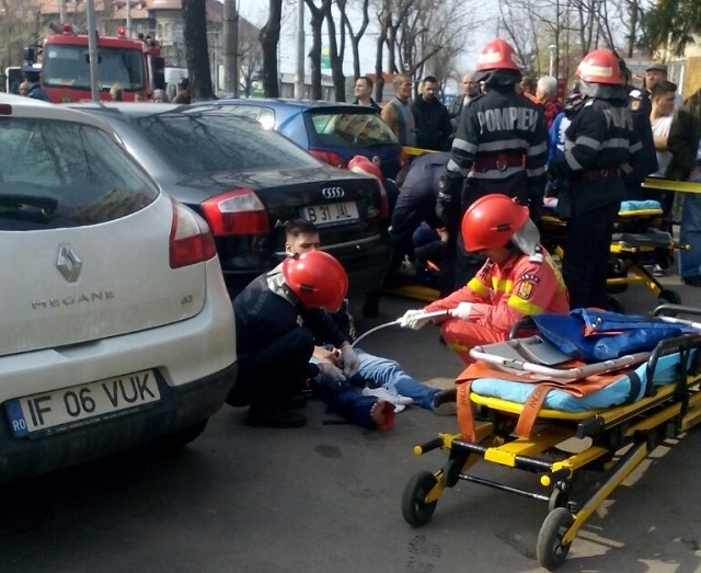 Accidentul s-a produs la intersecţia bulevardului Tineretului cu strada Trestiana, în momentul în care două maşini ar fi pătrus pe trotuar.