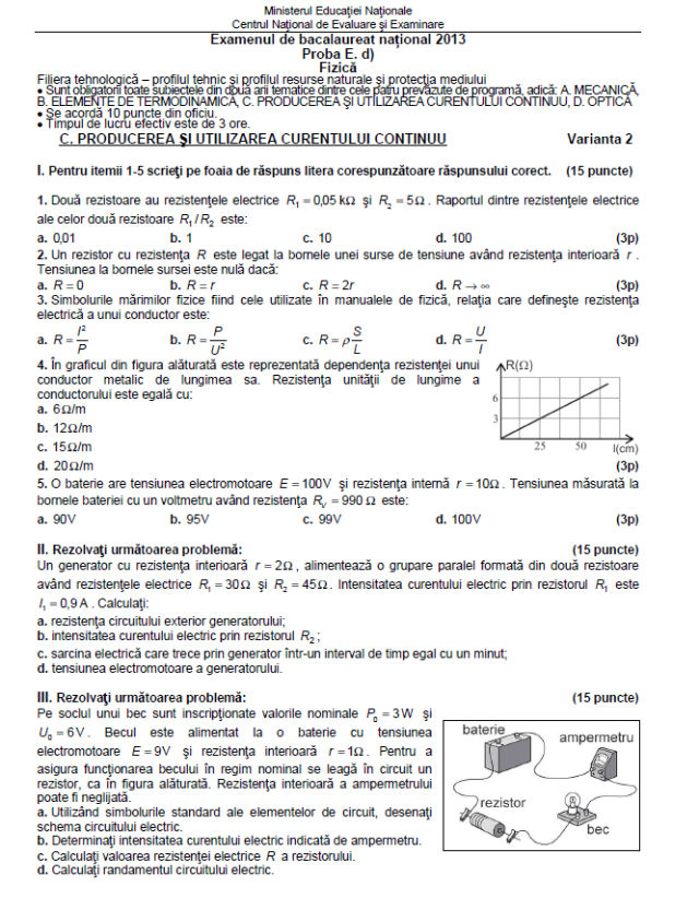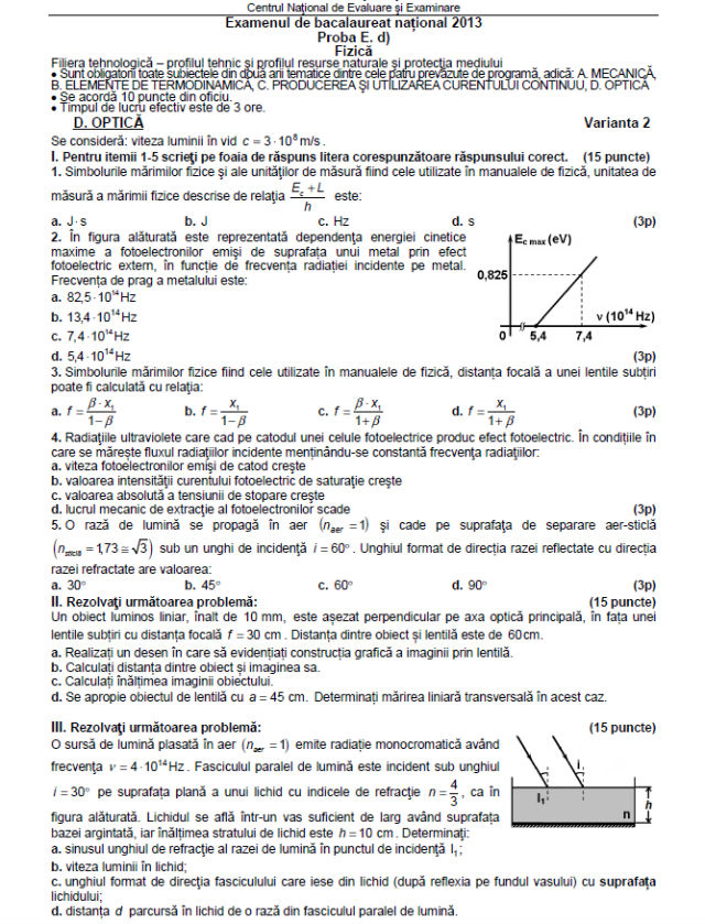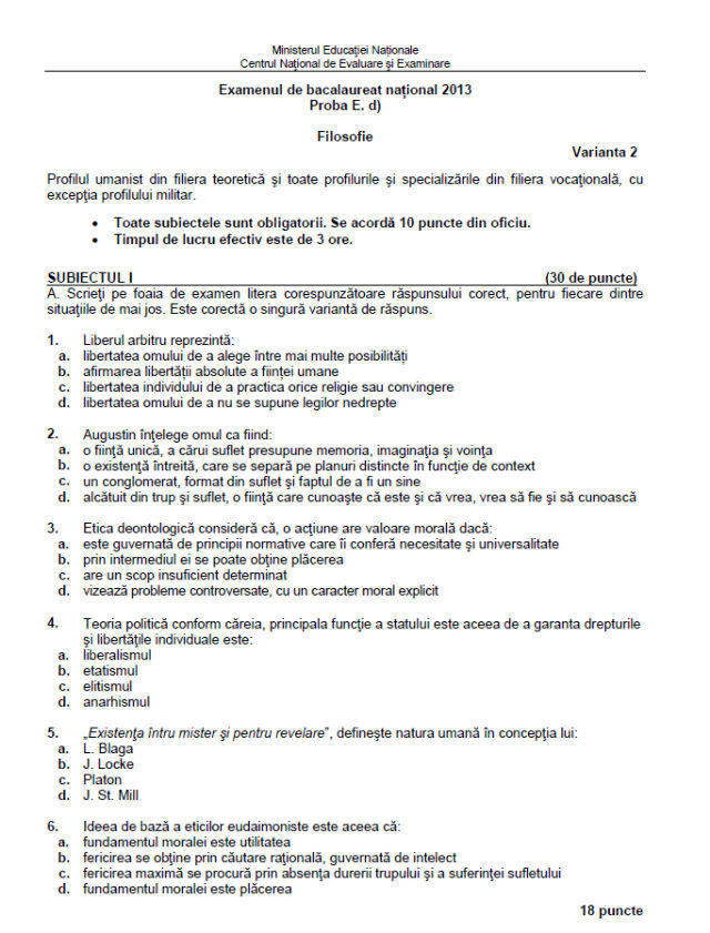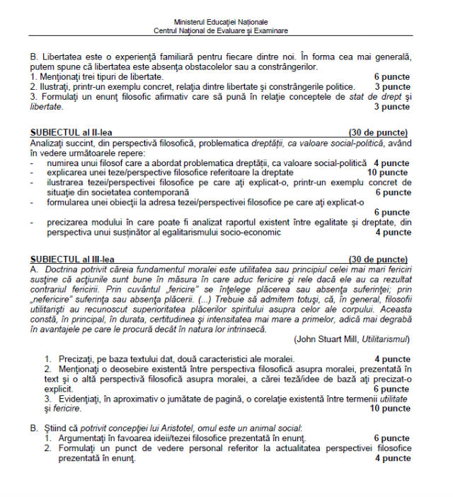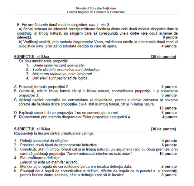 BACALAUREAT 2015. MODELE de subiecte la Logică, Filosofie, Geografie, Fizică, Biologie