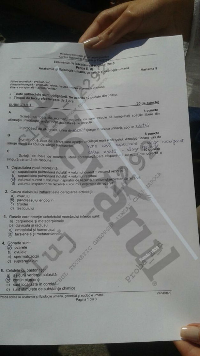 BACALAUREAT 2015. Subiectele la Biologie Anatomie şi Biologie Vegetală! Cum vi se par?