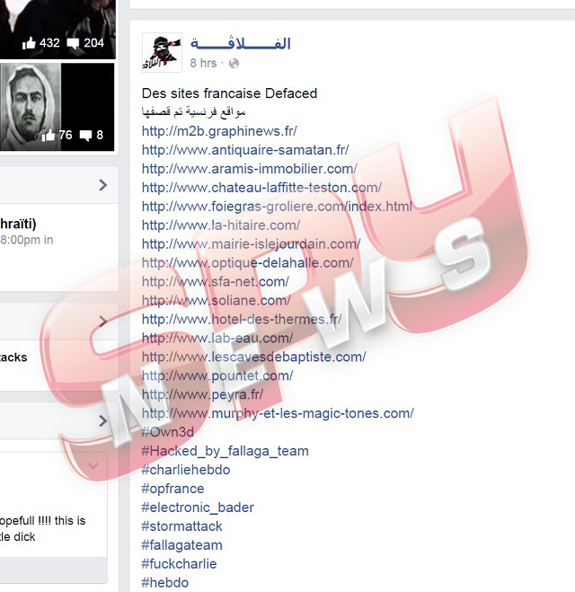 Reporterii SPYNEWS au descoperit că gruparea care a atacat pagina web din România este aceeaşi care a atacat mai multe site-uri din Franţa, printre care şi cel al publicaţiei franceze Charlie Hebdo. Cel puţin asta reiese de pe pagina oficială de Facebook a hackerilor, care au postat o listă cu paginile web atacate în cursul zilei de ieri.