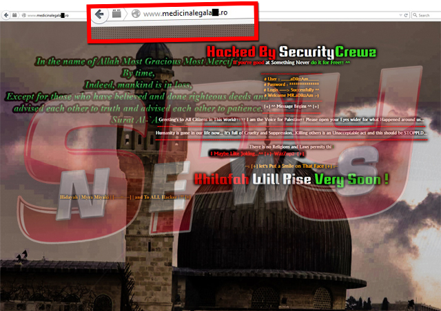 La numai câteva zile de la atacul cibernetic al paginii web al Serviciului de Medicină Legală Botoşani, prezentat, în premieră, de SPYNEWS, un alt site din România a fost "spart" de hackerii islamişti. Incidentul este unul destul de grav, mai ales că de această dată a fost aleasă pagina de Internet a unui ziar deţinut de Biserica Ortodoxă Română, unde a fost postat următorul mesaj: "Nu există alt Dumnezeu în afară de Allah!"