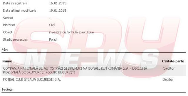 Conturile Fotbal Club Steaua Bucureşti (FCSB) ar putea fi blocate, după ce Compania Naţională de Autostrăzi şi Drumuri Naţionale din România a cerut executarea silită a clubului. Potrivit informaţiilor noastre, la mijloc sunt sume modice, suficiente însă pentru a pune în pericol activitatea FCSB.