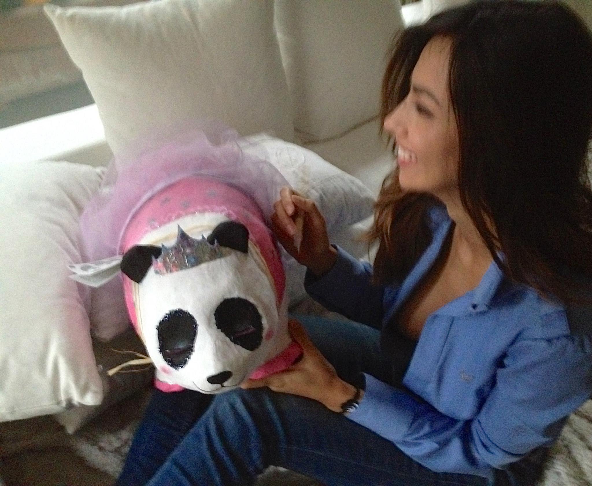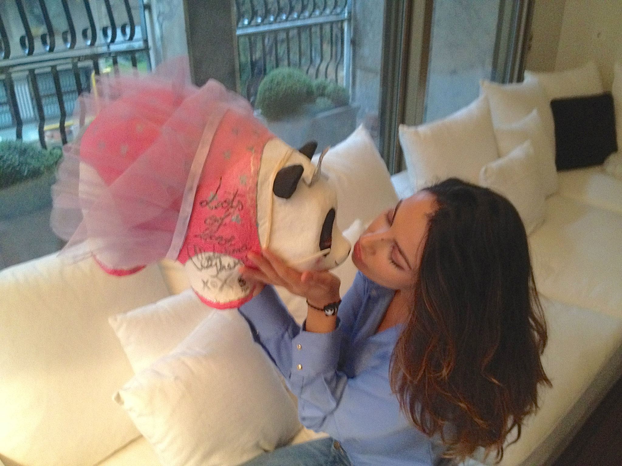 Sărutul nu e chiar ceea ce pare, dar Mădălina tot extrem de apetisantă este. Şatena a dat autografe pe un urs panda de jucărie pe care l-a luat în braţe şi l-a pupat de mai multe ori.