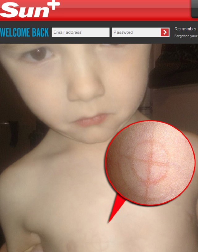 Părinţii unui copil de patru ani au rămas stupefiaţi când au văzut că pe pieptul fiului lor a apărut însemnul Diavolului.
