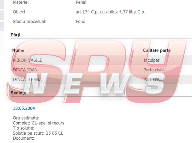 În 2004 Miron a fost condamnat la 15 ani de puşcărie pentru a ucis-o pe fiica lui Ioan Dincă