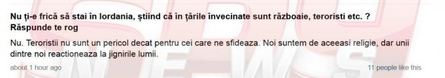 Ahmed Mustafa, tânărul în vârstă de 16 ani despre care presa a scris că s-ar fi cuplat cu fiica lui Minune, a reuşit să îi şocheze pe toţi atunci când a fost întrebat dacă nu îi e frică de terorişti. Fiind în vizită la familia tatălui lui, un afacerist din Iordania, un prieten virtual l-a întrebat direct: "Nu ţi-e frică să stai în Iordania ştiind că în ţările învecinate sunt războaie, terorişti?". Răspunul arabului lui Carmen Minune nu a întârziat să apară, lăsându-i pe toţi cu gura căscată. "Nu. Teroriştii nu sunt un pericol decât pentru cei care ne sfidează. Noi sunem de aceeaşi religie, dar unii dintre noi reacţionează la jignirile lumii", a spus Ahmed, lăsând să se înţeleagă faptul că ar pactiza cu jihadiştii.