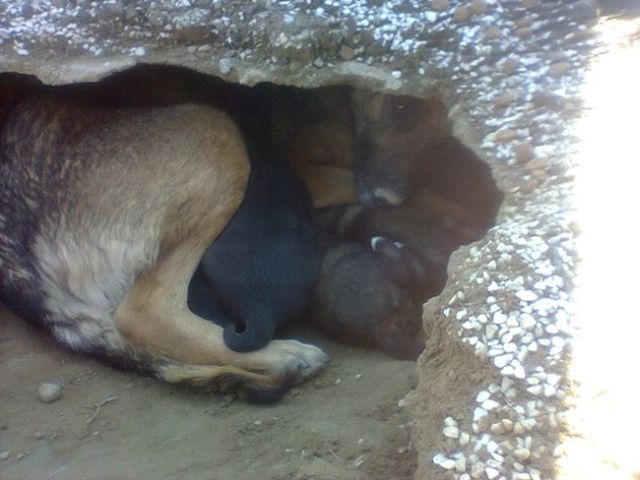 Dar pe cât de tragică pare povestea aceasta, adevărul din spatele acestui viral este altul. Nu vă faceți griji, totul se termină cu bine. De fapt, cățelul își păzea puii ascunși într-o groapă săpătă acolo, probabil tot de ea.
