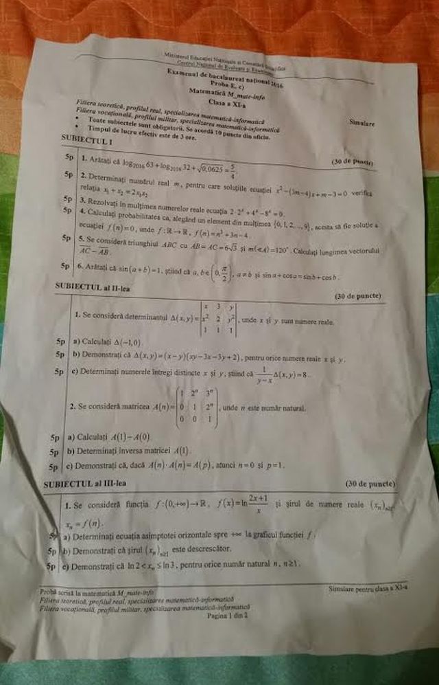 FOTO / SIMULARE BACALAUREAT 2016: Ce SUBIECTE au "picat" la MATEMATICĂ clasele a XI-a şi a XII-a