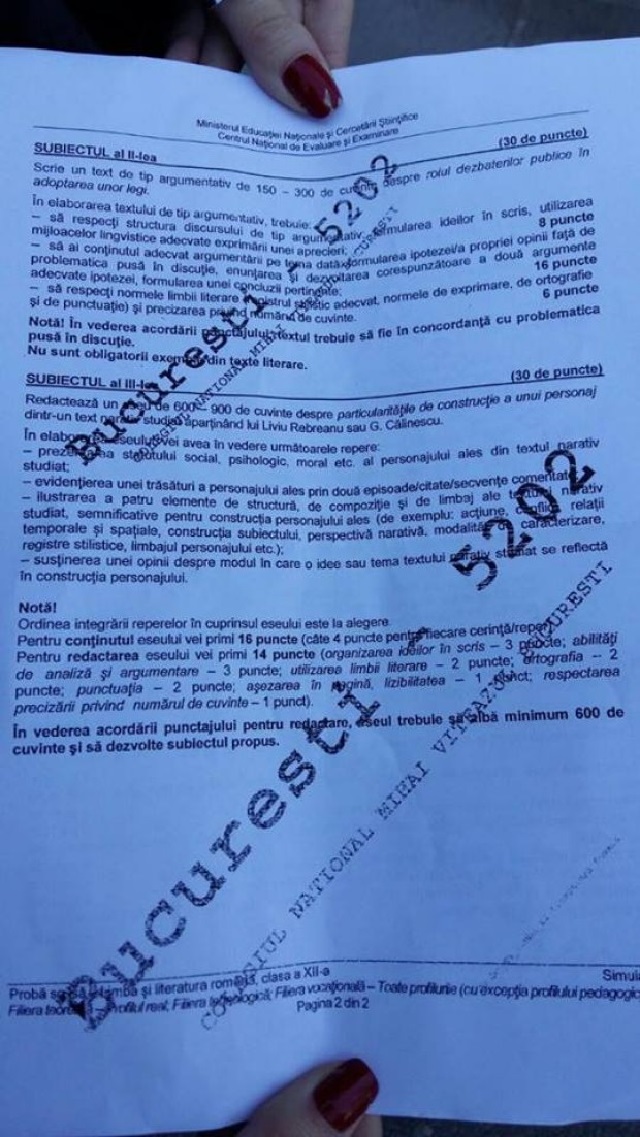 Homepage » Actualitate » FOTO / Subiectele Simulării de Bacalaureat 2016 la Limba şi Literatura Română! Ce subiecte au avut de rezolvat elevii de liceu