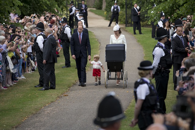 Ca şi în cazul prinţului George, primul lor copil, botezul a fost celebrat de arhiepiscopul de Canterbury, Justin Welby.