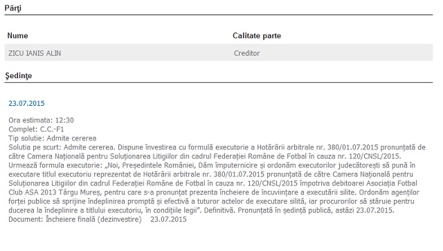 Ianis Zicu, unul dintre golgheterii României trece printr-un adevărat test al răbdării. Timp de doi ani a evoluat la ASA Târgu Mureş, acolo unde ar fi câştigat sume colosale de bani. Însă doar pe hârtie, pentru că de luni întregi fotbalistul încearcă să îşi recupereze banii munciţi de drept. În urma demersurilor lui, în luna ianuarie, judecătorii au decis ca fotbalistul să îşi primească banii, însă din nou Ianis Zicu a rămas cu buza umflată. "Admite cererea. Obligă clubul la plata debitului către jucător şi a taxei de procedură. Cu recurs", se menţiona în soluţia Camerei Naţionale de Soluţionare a Litigiilor. Umilit şi mereu pe holurile instanţei, celebrul fotbalist nu s-a dat bătut, iar zilele trecute judecătorii au decis executarea clubului la care Ianis Zicu a evoluat.