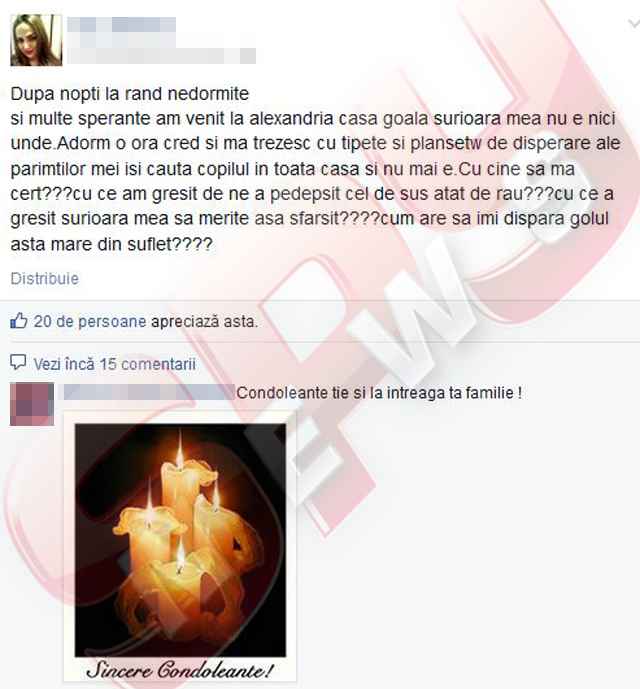 Mesajul sfâşietor al surorii tinerei omorâte de criminalul de pe Facebook! ”Părinții mei își caută copilul prin toată casa și nu mai e...”