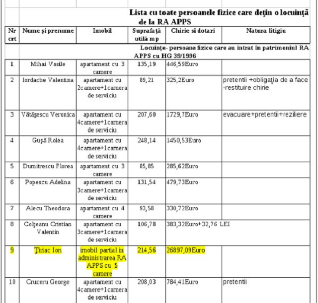Necazurile acestuia au început în 2013 când Guvernul a publicat lista chiriaşilor RA-APPS persoane fizice, care stau în casele statului, suprafaţa utilă deţinută şi chiria pe care o plătesc. Pe listă se regăsea şi milionarul cu o sumă mult peste celelalte. Omul de afaceri nu este la primul proces cu autorităţile. În trecut, milionarul a cerut - fără succes - peste trei sute de mii de euro de la RA APPS, în contul mai multor lucrărări de reparaţii pe care le-a efectuat la începutul anilor '90.