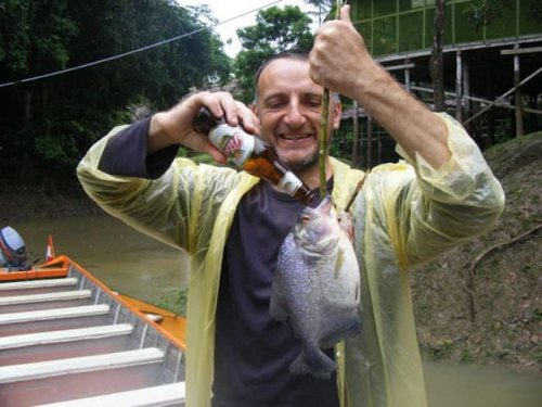 După ce s-a chinuit să pescuiască folosindu-se doar de o bâtă şi momeală, pescarul, beat, s-a amuzat copios pe seama formei pe care o avea gura peştelui, aşa că a hotărât să se distreze şi mai tare. A luat sticla de bere şi a turnat băutura în gura peştelui. Ca să se dea mare şi în faţa prietenilor săi virtuali, bărbatul şi-a făcut poză şi a pus-o pe contul lui de socializare.