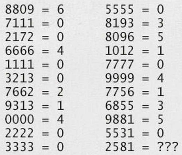 Conform acestei logici, răspunsul la întrebarea ''2581 = ???'' este 2, fiind două cercuri în cifra 8, scrie caplimpede.ro.