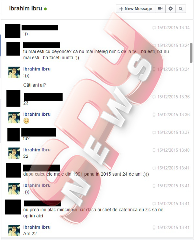 La început, deşi uşor timid, tânărul părea extrem de interesat de tânăra care l-a abordat pe un cont de socializare. După un scurt schimb de replici, Ibrahim a trecut direct la atac şi a chemat-o "la un suc" fără să stea prea mult pe gânduri. Bineînţeles, nu înainte de a se eschiva atunci când a fost întrebat dacă mai este cu Beyonce de România. "Sper să vii singur, nu cu Beyonce. Nu aş vrea să mă păruiască", i-a spus tânăra, în spirit de glumă. "Cum să păruiască cineva o fată finuţă ca tine?", i-a răspuns Ibrahim, extrem de galant.