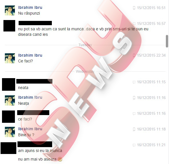 Încins şi dornic de a-şi întâlni noua cucerire, Ibrahim a uitat parcă de Beyonce de România şi a început să o "bombardeze" pe tânăra misterioasă cu o sumedenie de complimente: "Frumuseţe, o să te zăpăcesc. Promit. Ce te-ai supărat aşa frumoasa mea? Puiul meu. Te văd şi eu astăzi?"