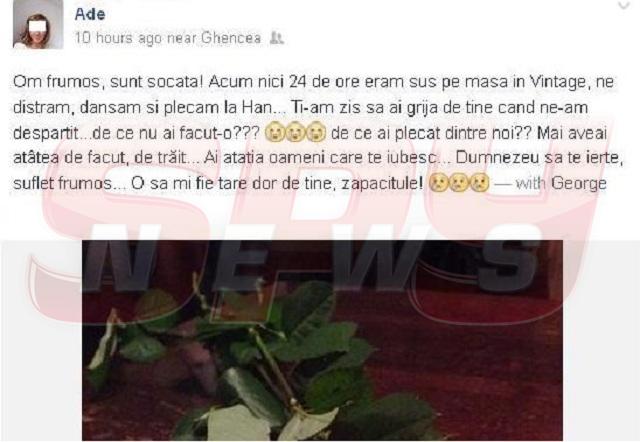 Nimic nu anunţa însă acest deznodământ. Cu o seară înainte, George s-a distrat alături de prieteni în cluburile din Centrul Vechi. Mărturie stau mesajele apropiaţilor săi. "Om frumos, sunt şocată! Acum nici 24 de ore eram sus pe masă în club, ne distram, dansam...Ţi-am zis să ai grijă de tine când ne-am despărţit...De ce nu ai făcut-o??? De ce ai plecat dintre noi?? Mai aveai atâtea de făcut, de trăit... Ai atâţia oameni care te iubesc...Dumnezeu să te ierte, suflet frumos...O să-mi fie tare dor de tine, zăpăcitule!", a postat una din amicele acestuia.