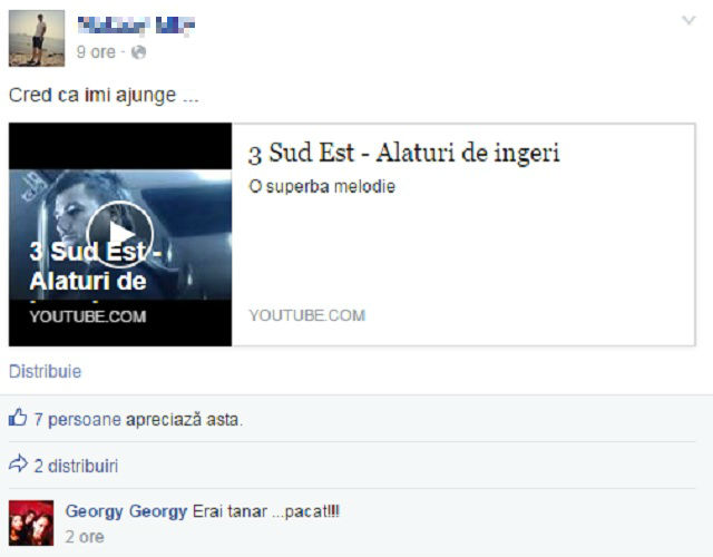 În ultima perioadă, tânărul a avut o serie de postări pe pagina personală de Facebook, din care reieşea suferinţa cumplită prin care trece. Într-unul din mesaje, mânat de gelozie, el arunca vorbe dure la adresa celei pe care o iubea.