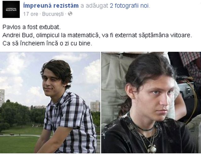 Anunţul a fost făcut pe internet de persoane apropiate de aceştia: "Pavlos a fost extubat. Andrei Bud, olimpicul la matematică, va fi externat săptămâna viitoare. Ca să încheiem încă o zi cu bine."