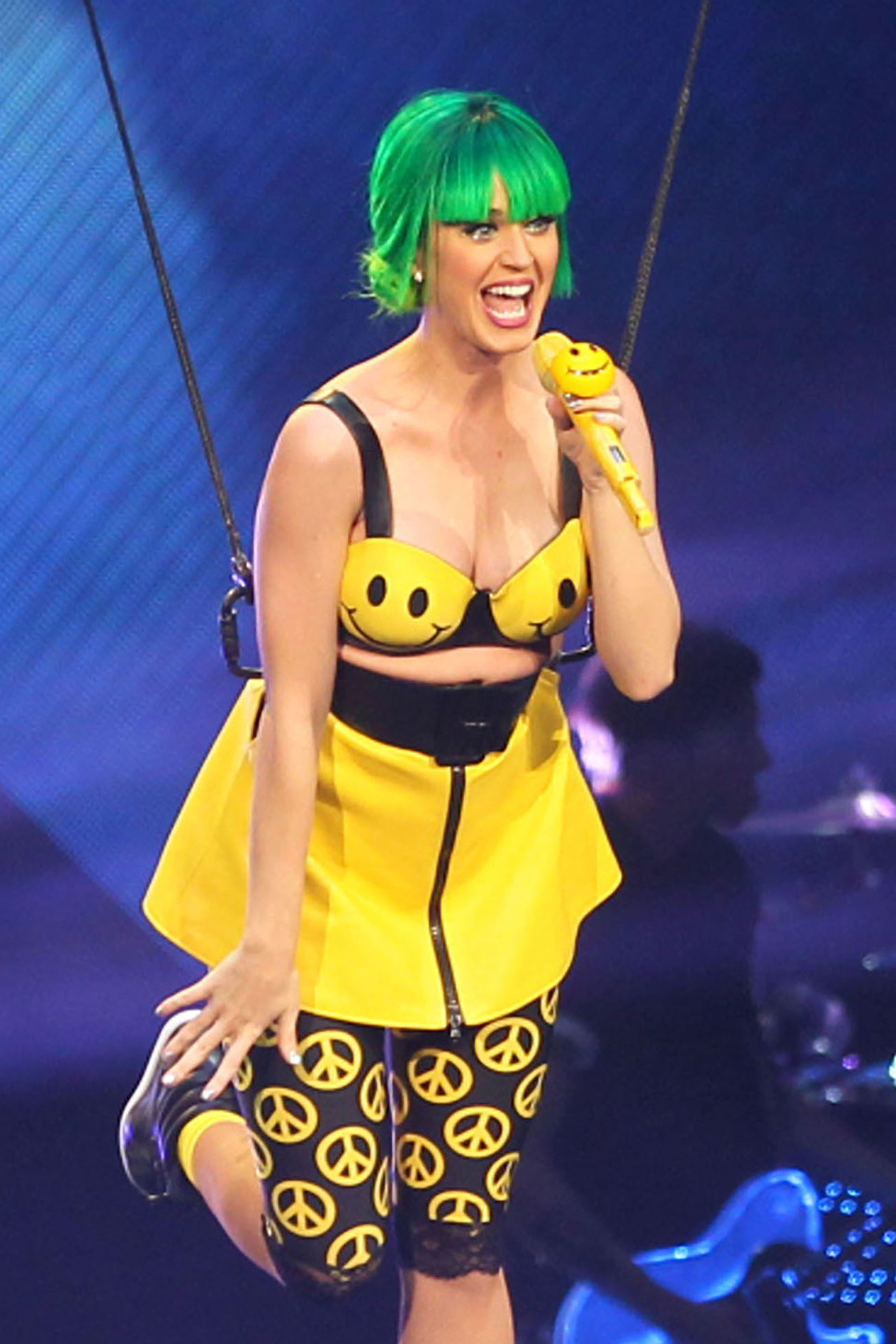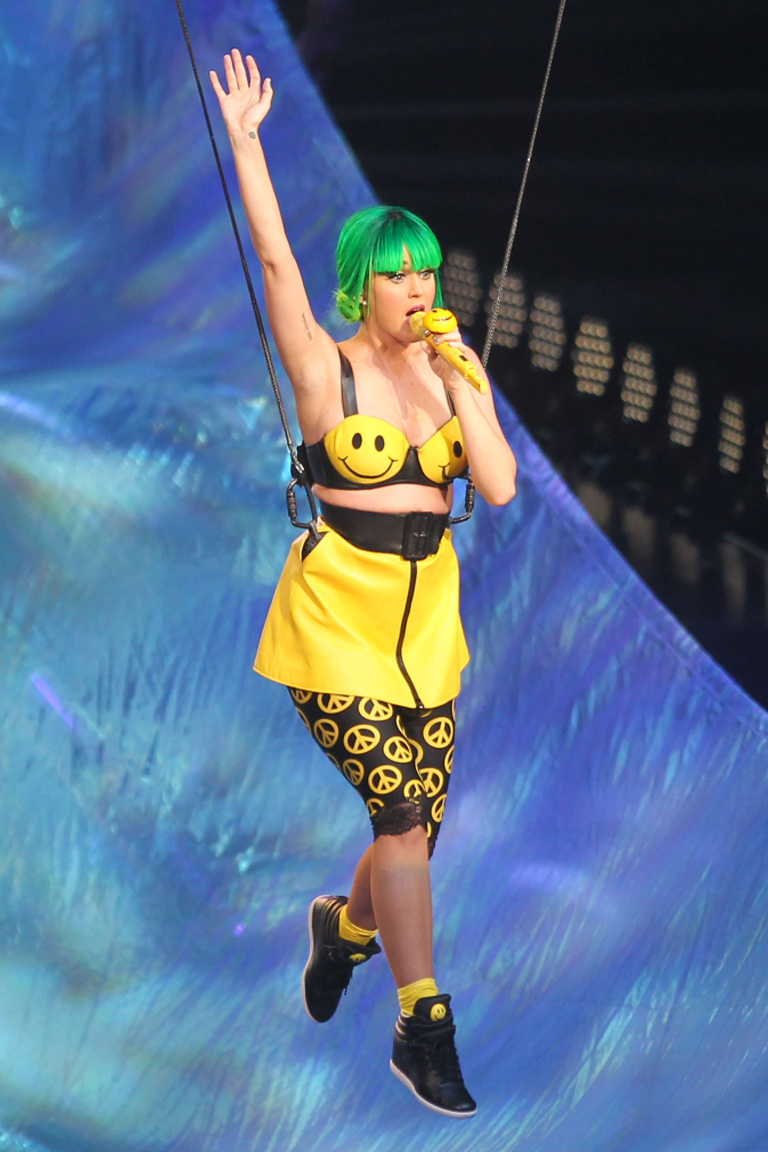 Îmbrăcată extrem de colorat, jucăuş, Katy Perry şi-a impresionat audienţa. Din păcate, look-ul său inedit nu a reuşit să-i ascundă kilogramele în plus. Coapsele de proporţii au ieşit în evidenţă din caza colanţilor neadecvaţi, iar colăceii de pe burtă s-au văzut şi mai bine din cauza curelei care o strângea. Sperăm că artista va lua măsuri pentru a nu ajunge cum era Christina Aguilera într-o anumită perioadă.