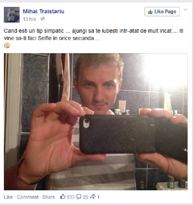 De data asta, Trăistariu a simţit nevoia să fie şi puţin... "modest". Cântăreţul a pus un nou selfie, de data asta realizat în baie, şi a scris un text de zile mari. "Când eşti un tip simpatic ajungi să te iubeşti într-atât de mult încât îţi vine să-ţi faci selfie în orice secundă", a mărturisit plin de mândrie, Mihai Trăistariu.