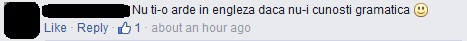 Alte comentarii negative au fost despre gramatica limbii engleze despre care fotbalistul se pare că nu ştie prea multe. Din pricina descrierii pe care fotografia o avea, acestuia i-au fost insultate cunoştinţele despre limba engleză. "Nu ţi-o arde în engleză dacă nu-i cunoşti gramatica", i-a spus un fan fotbalistului.