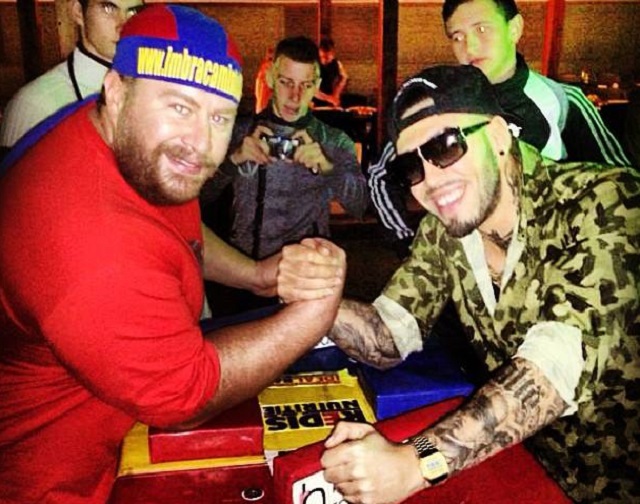 Artistul a postat recent pe contul de Facebook o poză în care face skandenberg cu Radu Valahu şi este destul de clar cine a câştigat partida. Deşi are un fizic de invidiat deoarece merge regulat la sală, Velea s-a confruntat cu un adevărat "uriaş", pe care nu l-a putut dovedi. "Nici măcar o şansă", a scris vedeta pe reţeaua de socializare.