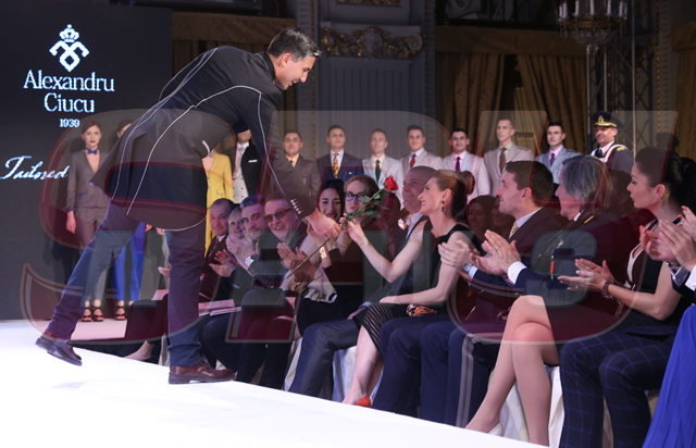 La finalul prezentării, Alexandru Ciucu i-a oferit frumoasei sale soţii un trandafir roşu, care s-a asortat perfect cu rujul şi pantofii artistei.