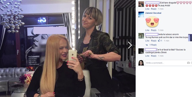 Anda și-a aranjat părul la salon și nu a ratat ocazia de a se fotografia alături de stilista care îi pieptăna cu grijă podoaba capilară.
