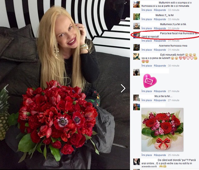 Anda Adam a postat pe o reţea de socializare o fotografie în care apare cu un buchet imens de lalele. Machiajul natrural şi culoarea uşor schimbată a părului le-a atras atenţia fanilor, care au remarcat faptul că artista nu mai arată ca înainte de a deveni mamă.