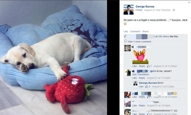 În imagine, Andreea Bălan stă pe covor alături de câinele lui George. Patrupedul poartă numele de Jack şi este de-a dreptul adorabil. "Când ai compania pe care ţi-o doreşti, serile sunt mai frumoase", a scris vedeta la descrierea imaginii de pe Facebook.