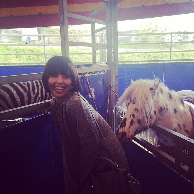 Vedeta s-a dus la herghelie, unde a făcut cunoştinţă cu toţi caii. Andreea s-a pozat în diferite ipostaze, iar căluţii par foarte fericiţi de vizita ei. La un moment dat bruneta s-a întors cu spatele, iar un cal de culoare albă o miroase pe vedetă.