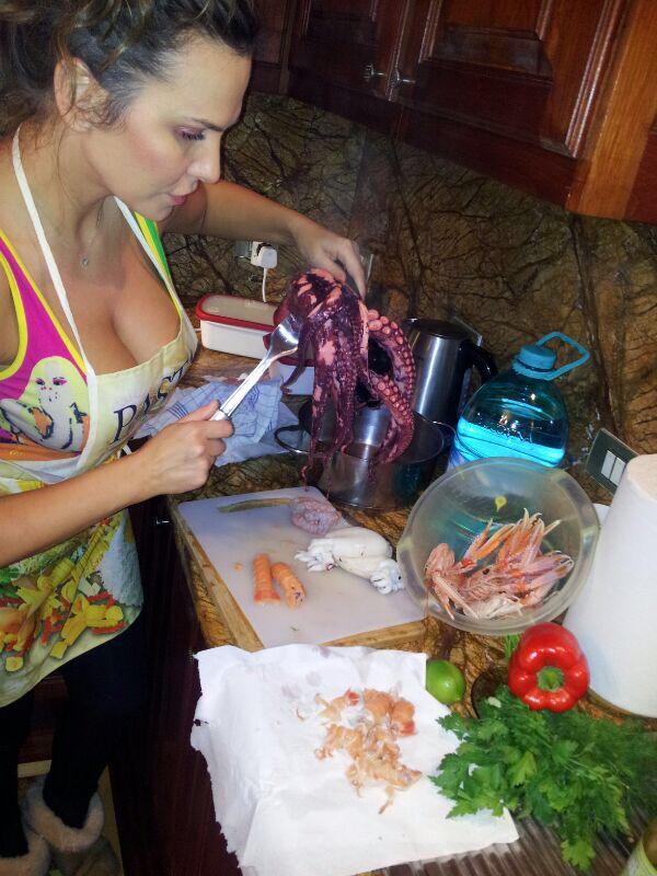 "Gataaa cu carnea și salatele cu maioneză. În seara asta mâncăm caracatița fiartă în vin și paste cu langustine...mmmm yami yami:)",a scris artista pe Facebook.