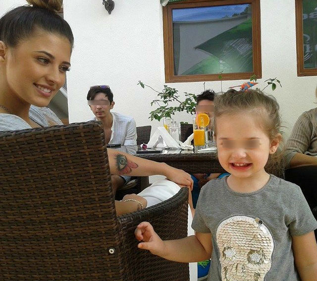 Vedeta apare într-o poză în care se află la un suc împreună cu prietenii, dar şi cu fetiţa ei, Maya. Aceasta râde la aparatul foto, iar Antonia o priveşte cu multă dragoste.