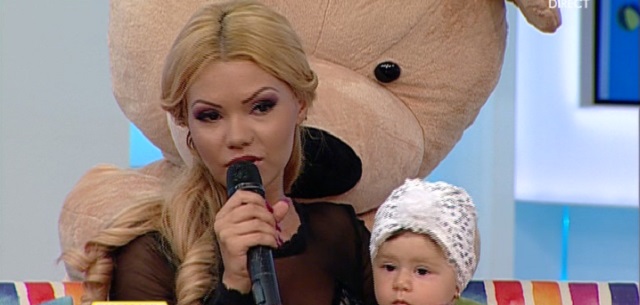 Blonda şi-a făcut apariţia în platoul emisiunii cu fetiţa în braţe şi a început să cânte o piesă dedicată special ei.