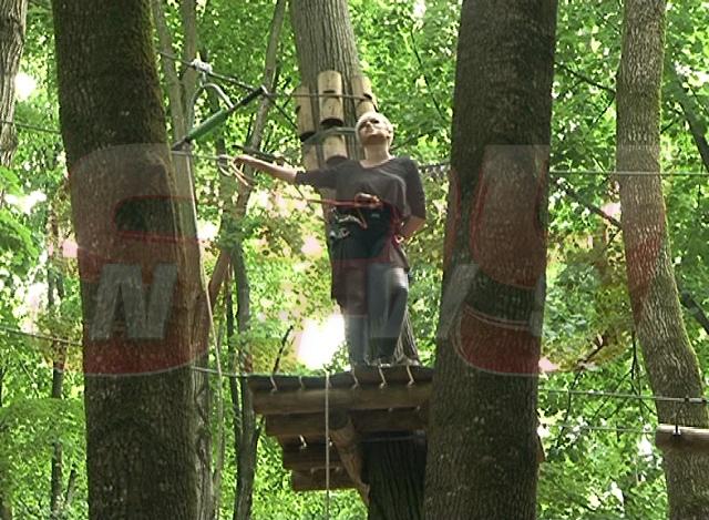 Odată ajunși în parcul cu pricina, Misha și Dj Sava s-au pus pe cățărat în copaci, pe plimbat cu tiroliana și nu au dat înapoi nici în momentul în care, deasupra unui hău adânc, au trebhuit să traverseze susținuți doar de o plasă făcută din frânghii care tremura și care le-a dat senzații tari. ”Vai, nu cred! Deci, nu cred, Sava! Ce nu crezi? Cum îţi cam tremură picioarele! Mie?! E de la plasa asta! Păi da, de la plasă...Aoleu, deja mi s-au înmuiat picioarele! Aoleu, da, e naşpa asta! Vaai! Nu plânge, Sava! Vai, deci nu te cred, nu cred!”, exclama, cuprinsă de un val de adrenalină, frumoasa soție a lui Connect-R.
