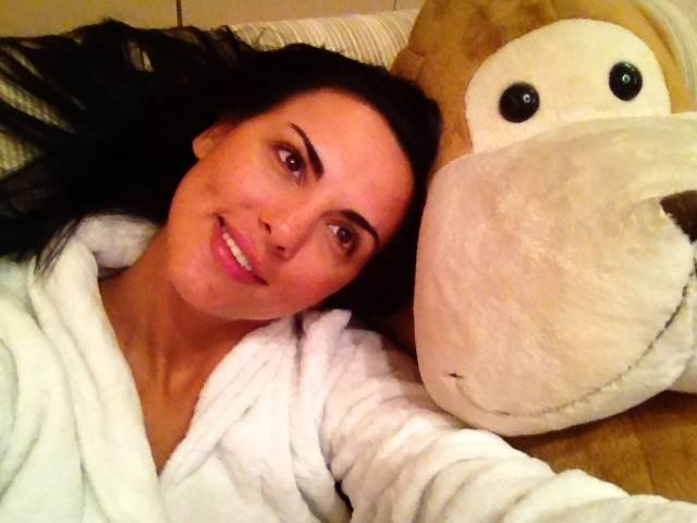 Bruneta a publicat recent pe pagina de Facebook o fotografie în care le urează "Noapte bună" prietenilor virtuali. Lavinia apare într-un halat alb şi fără pic de machiaj. Vedeta zâmbeşte suav şi şi-a făcut un selfie lângă un urs de pluş, semn că el îi ţine de cald în nopţile în care doarme fără iubitul ei.