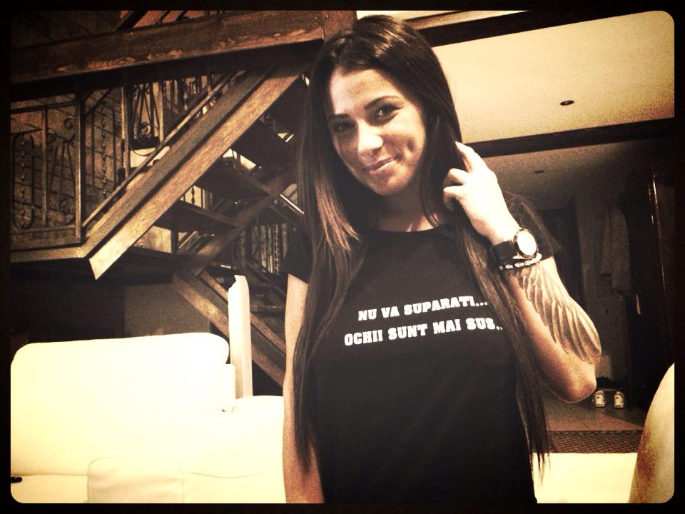 Roxana Vancea a vrut să le dea peste nas tuturor bărbaţilor care nu se uită la altceva decât la sânii ei, aşa că şi-a făcut un tricou cu un mesaj amuzant.