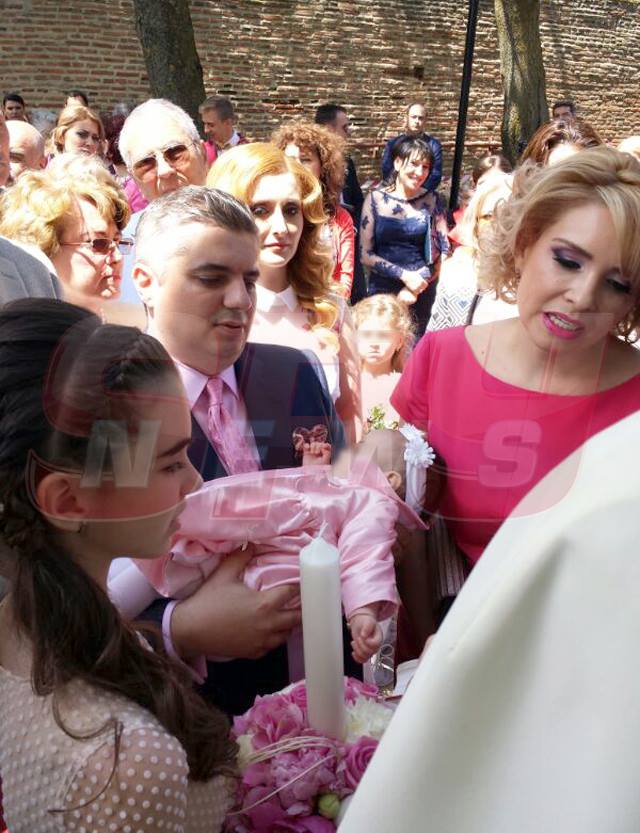 Ceremonia de botez a fost una restrânsă, oficializată de doi preoţi, iar apa în care micuţa a fost creştinată a fost adusă din Iordan. Invitaţii au fost membrii familiei şi persoane apropiate lor. Dintre figurile publice, la eveniment a fost prezentă Anca Lungu, alături de soţul ei, Ştefan Lungu.