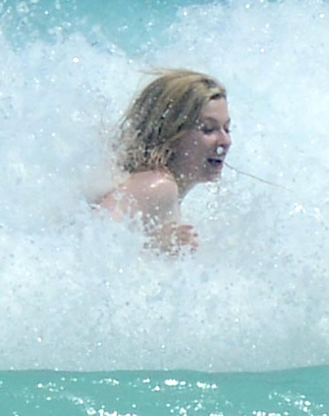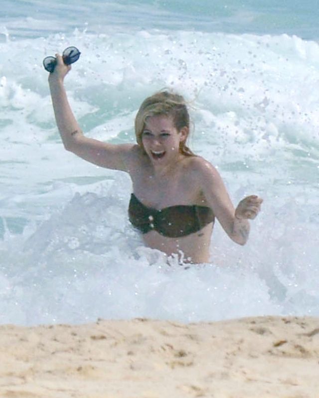 Cântăreaţa Avril Lavigne a oferit imaginea zilei, ieri, pe o plajă din Mexic. Vedeta de 29 de ani, despre care s-a zvonit că ar fi pe punctul de a se despărţi de cel de-al doilea soţ al ei, Chad Kroeger, s-a zbenguit pe plajă şi în apă, iar distracţia a cam costat-o.