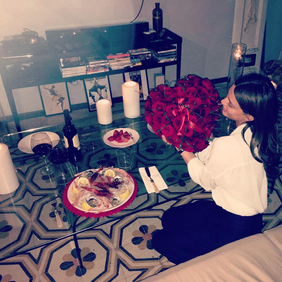 Vedeta le-a arătat prietenilor ei virtuali cum a surprins-o iubitul ei, de Valentine's Day, atunci când a ajuns acasă. Aceasta a postat o imagine în care apare ţinând în braţe un buchet imens de trandafiri roşii, iar pe masa din faţa ei are pregătită o cină savuroasă.