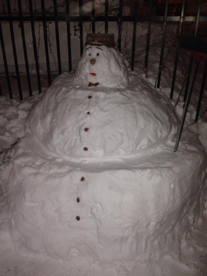 Fericită că a nins extrem de mult în ultimele zile, Andreea Podărescu a dat fuga afară şi a făcut un om de zăpadă.