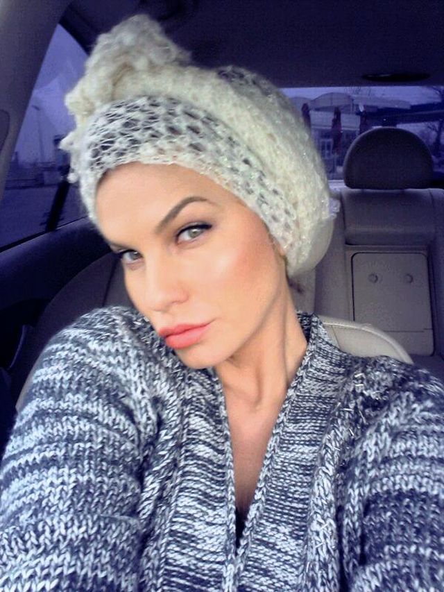 Artista s-a fotografiat în maşină, în drum spre Oradea. Este înfofolită asemenea unei bătrânici. Are un pulover gros pe ea, iar pe cap şi-a înfăşurat o ditamai eşarfa, look-ul ei fiind departe de cel al vedetei senzuale care şi-a făcut o multitudine de fani în România.
