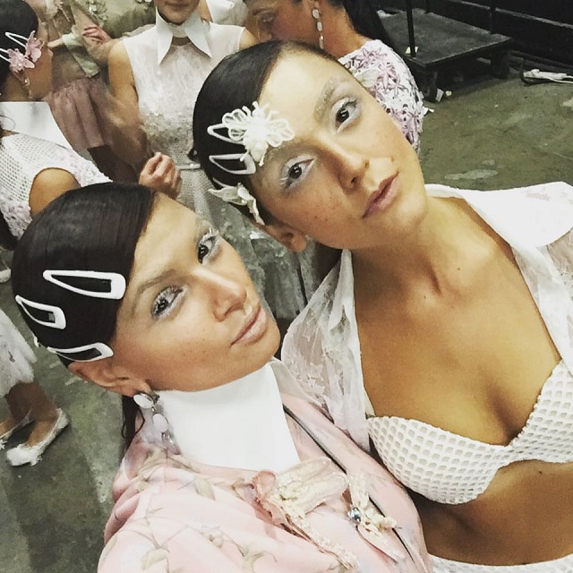 În imagine, Ramona Gabor are un tip de mască pe faţă şi pare extrem de palidă. Probabil, vedeta a prezentat o colecţie inedită de modă sau a jucat într-o piesă de teatru.
