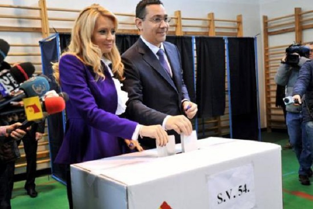 "Trecând în tabăra roşie, lucrurile stau la fel ca în primul tur. Avem o Daciana Sârbu asortată cromatic perfect cu cravata soţului şi… aceeaşi flacără violet. Se putea şi mai bine însă, per ansamblu, nu remarc greşeli majore. Victor Ponta: previzibil. Nota cuplului: 7,5", a mai spus Iulia Abu.