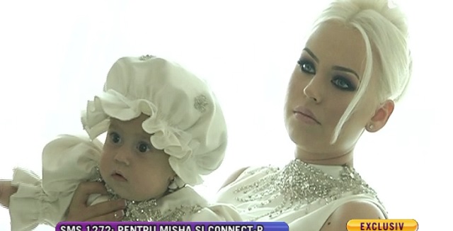 Connect-R şi Misha se pot declara părinţi împliniţi. Maya, fetiţa lor, este de o frumuseţe rară. Fetiţa a purtat o rochiţă creată de acelaşi designer care i-a făcut Mishei rochia de mireasă.
