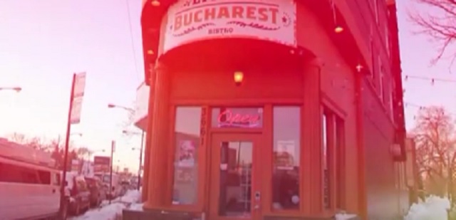După câteva sesiuni foto, artistul a acceptat invitaţia unui român de a servi o pălincă, în drum spre singurul restaurant românesc din Chicago, denumit în mod sugestiv, "Bucharest".