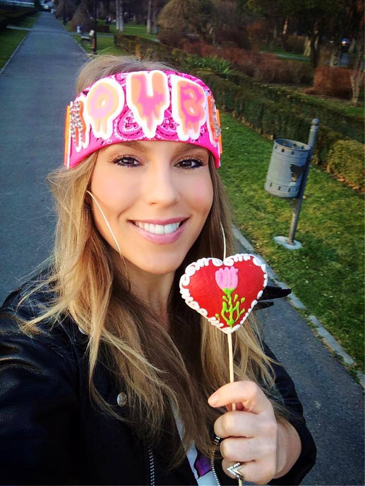 Corina Bud s-a bucurat din plin de vremea frumoasă! A ieşit în parc cu asta pe cap şi şi-a cumpărat o acadea.