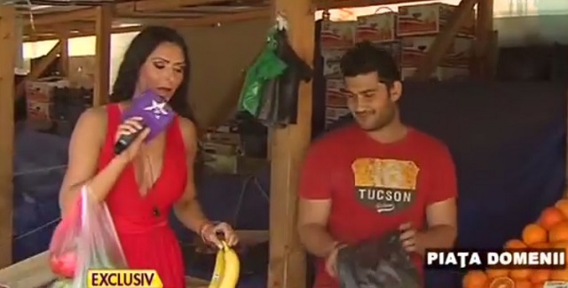 Bruneta a fost îmbrăcată cu o rochiţă roşie ca focul şi cu un decolteu adânc. Raluca a cumpărat banane, cireşe, căpşuni, pepene şi multe alte fructe. Când au văzut-o îmbrăcată atât de sexy, băieţii au stat cu ochii numai pe ea. "Vreau banane! Cele mai mari, că mie îmi plac mari", a strigat vedeta prin piaţă.